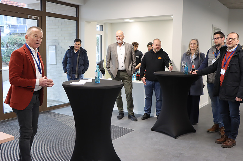 Landrat Thomas Will (links) und AVM-Geschäftsführer Olaf Doerenbecher (3. Von links) begrüßten zur Führung durchs neue Gästehaus für die Gerüstbau-Azubis, das im Januar an den Start geht. Foto: Kreisverwaltung Groß-Gerau
